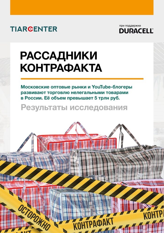 Среди основных каналов сбыта контрафактной продукции - крупнейшие оптовые рынки Москвы. Кроме того, аналитики ТИАР-Центра выделили 25 популярных YouTube-каналов, на которых публикуются видео о создании бизнеса на продаже контрафактных товаров, их общий охват — более 80 млн просмотров. Популяризация бизнеса на контрафакте идёт в формате реалити-шоу: тур по оптовым рынкам, с указанием какие и где подделки можно купить. Затем расписывается стратегия, где закупать продукцию, какими должны быть каналы продаж.
